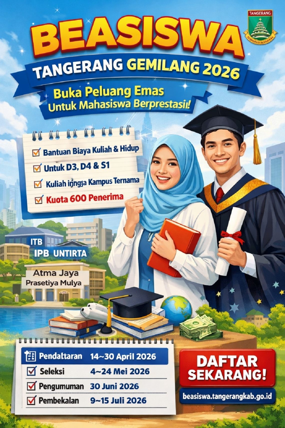 Targetkan 600 Mahasiswa, Pemkab Tangerang Buka Pendaftaran Beasiswa Tangerang Gemilang 2026