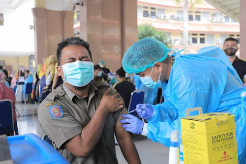 Lebih lanjut, Arief juga menuturkan proses vaksinasi yang dilakukan hari ini berjalan dengan kondusif dengan melakukan protokol kesehatan