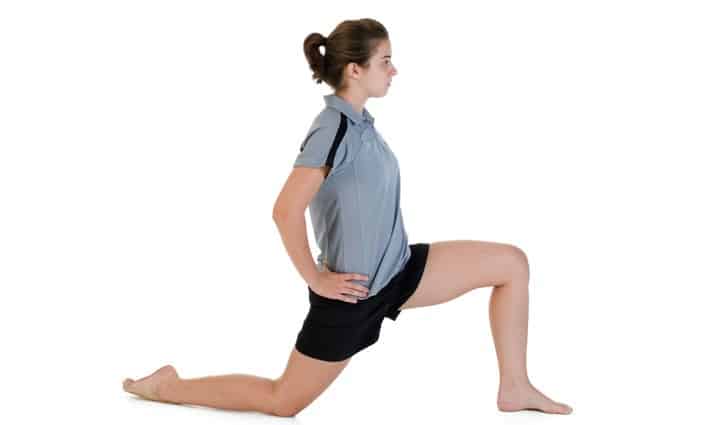 - Satu kaki diletakkan di depan dengan posisi berlutut, sedangkan kaki satunya diluruskan ke belakang seperti gambar di atas.