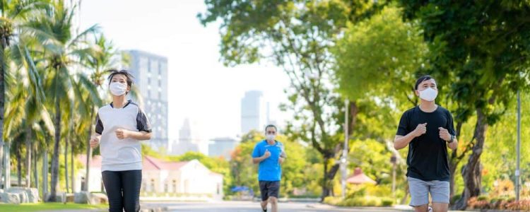 Jaga kesehatan di tengah pandemi dengan jaga jarak setidaknya dua meter dari orang lain. Hindari berbicara dengan orang lain untuk meminimalisasi penyebaran droplet. Kemudian, jika lokasi yang dituju ternyata ramai dan praktik jaga jarak tidak diterapkan dengan baik, sebaiknya urungkan niat untuk berlari di lokasi tersebut.