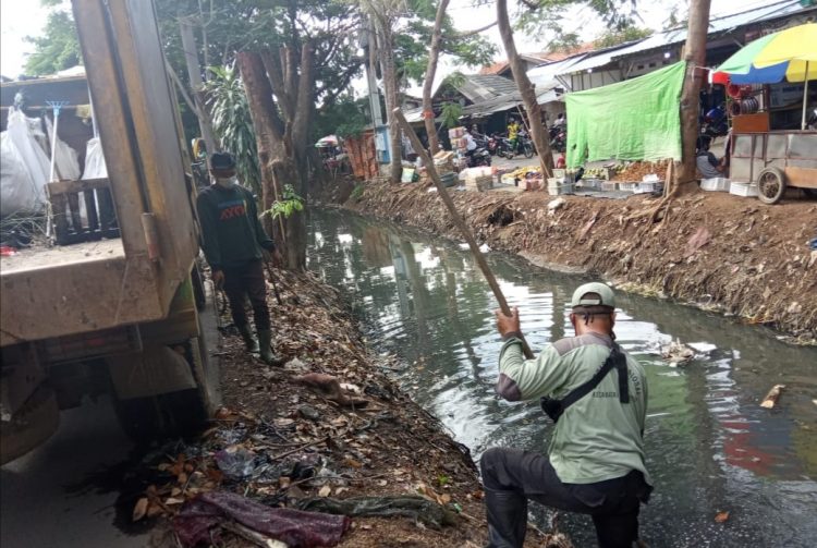 TANGERANG – Pemkot Tangerang melalui Dinas Pekerjaan Umum dan Penataan Ruang (PUPR) serta Dinas Lingkungan Hidup membersihkan sampah di sekitar Pasar Cipondoh, Kota Tangerang, Sabtu (9/1/2020). Pembersihan tersebut dilakukan untuk mencegah terjadinya banjir saat musim penghujan.