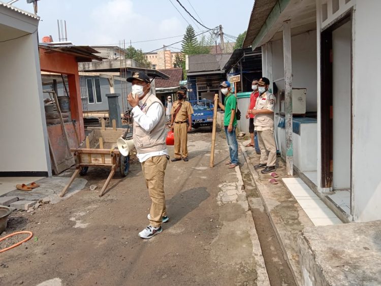 TANGERANG – Mengantisipasi penyebaran Covid-19 di Kelurahan Pakulonan Barat (Pak Bar), Lurah setempat keliling ke rumah warga untuk memberi himbauan dan menyemprotkan disinfektan.
