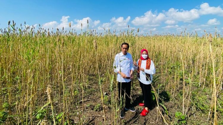 “Karena di sini juga sudah dicoba jagung kurang berhasil, coba sorgum sangat berhasil karena memang sebelumnya sorgum itu sudah bertumbuh baik dan ditanam oleh para petani kita di Sumba Timur dan di Provinsi Nusa Tenggara Timur,” ujar Presiden.