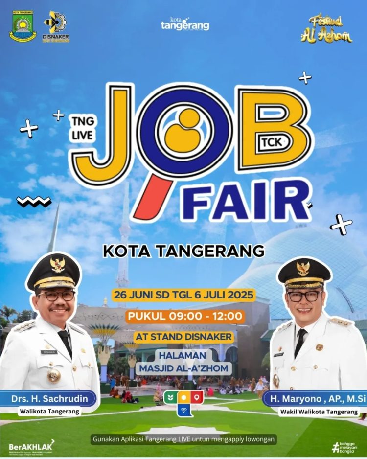 Stand Job Fair Disnaker Kota Tangerang ini akan tetap tersedia selama Festival Al-A’zhom berlangsung di Taman Elektrik, mulai 26 Juni hingga 6 Juli 2025. (KEY)