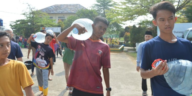 BOGOR, WT – Santri Sekolah Cendekia BAZNAS melakukan aksi berbagi air untuk warga di Kecamatan Cibungbulang, Kabupaten Bogor, Jawa Barat.