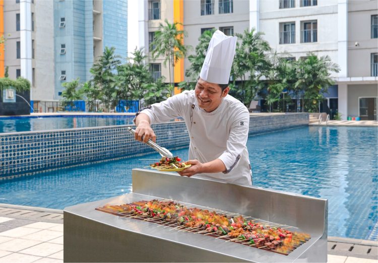 TANGERANG, WT – Memberikan pengalaman berbeda kepada para tamu dengan sensasi rasa makanan yang sangat berbeda dari sebelumnya Vega Hotel Gading Serpong melakukan inovasi dengan BBQ Dinner Selera Nusantara di YuGo Restaurant Vega Hotel Gading Serpong dengan suasana makan di samping kolam renang yang sedikit berbeda dengan BBQ sebelumnya (American BBQ).