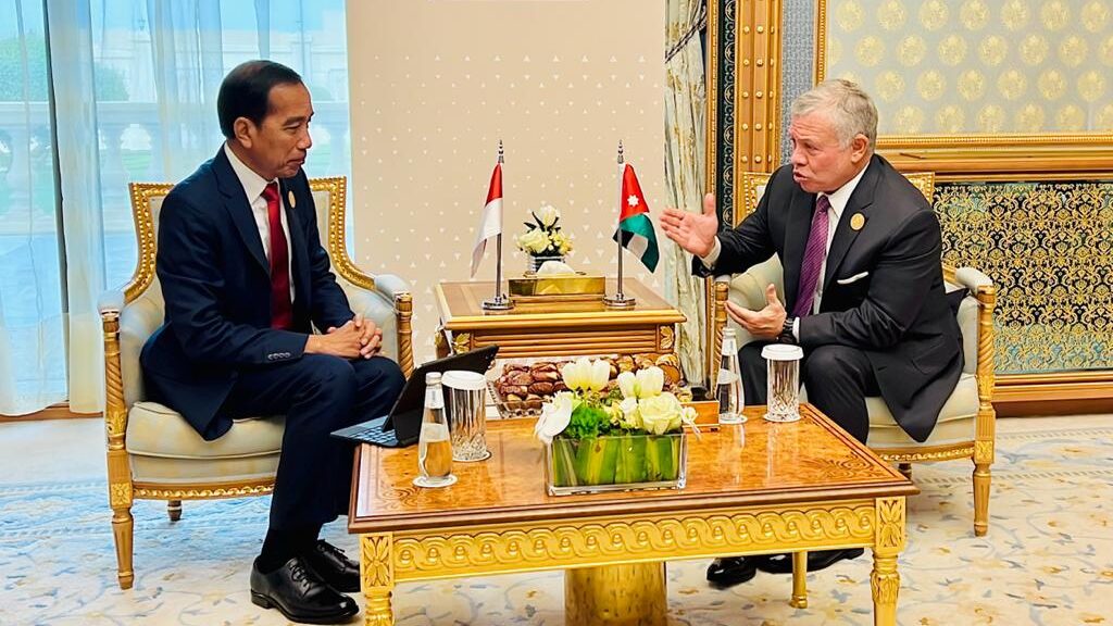Presiden Joko Widodo melakukan pertemuan bilateral dengan Raja Yordania, Abdullah II bin Al-Hussein, di sela-sela Konferensi Tingkat Tinggi (KTT) Luar Biasa Organisasi Kerja Sama Islam (OKI).
