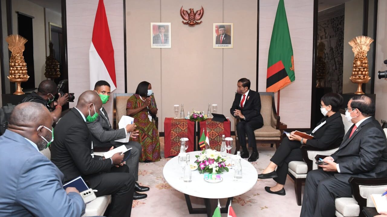 Selepas menghadiri pembukaan The 7th Global Platform for Disaster Risk Reduction (GPDRR) 2022 di Bali Nusa Dua Convention Center (BNDCC), Rabu, 25 Mei 2022, Presiden Joko Widodo menerima Wakil Presiden Zambia, W.K. Mutale Nalumango. Dalam pertemuan tersebut, Presiden antara lain membahas upaya penguatan kerja sama di bidang ekonomi antara Indonesia dengan Zambia.