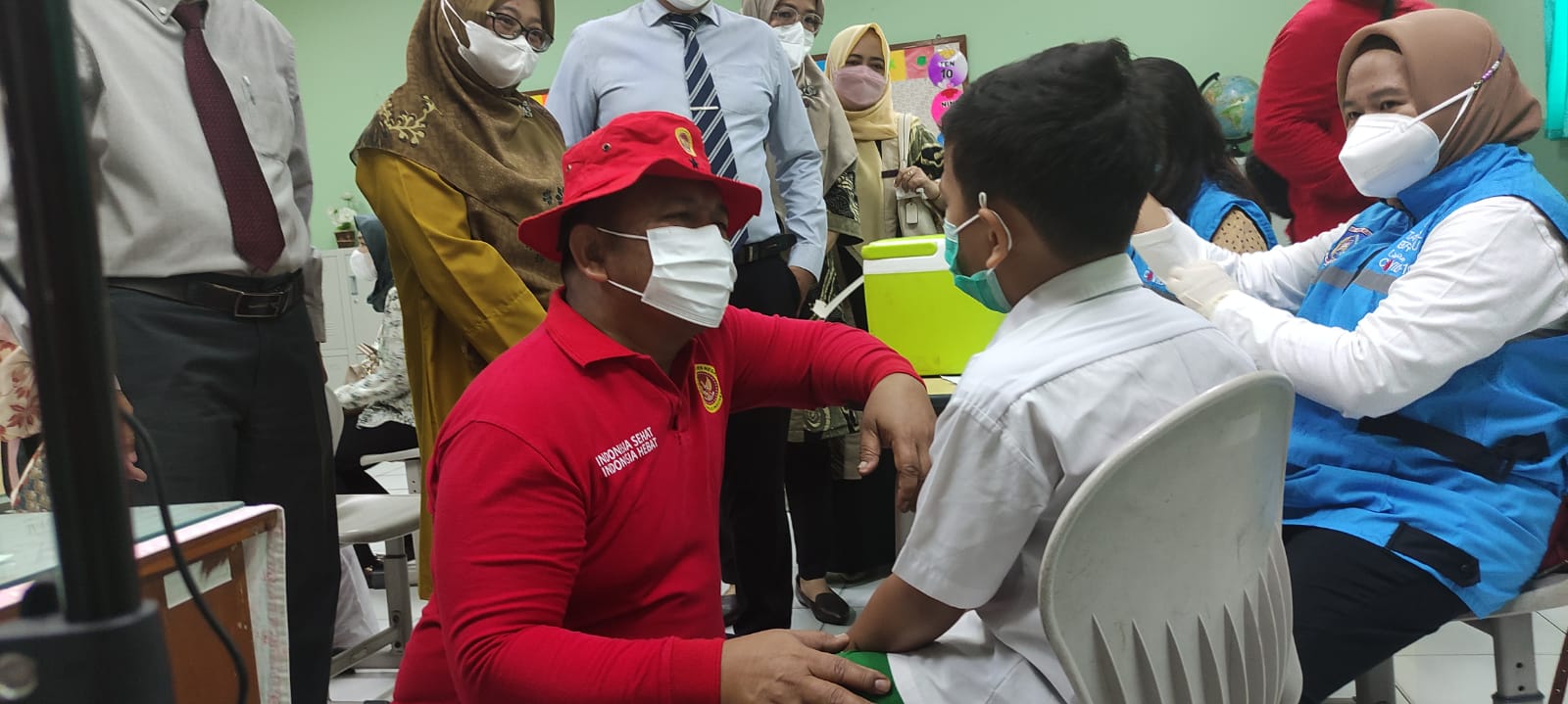 Badan Intelijen Negara (BIN) daerah Banten turut menggelar vaksinasi bagi anak usia 6-11 tahun di SD Islam Al Azhar BSD, Serpong, Tangsel, Rabu (15/12/2021).