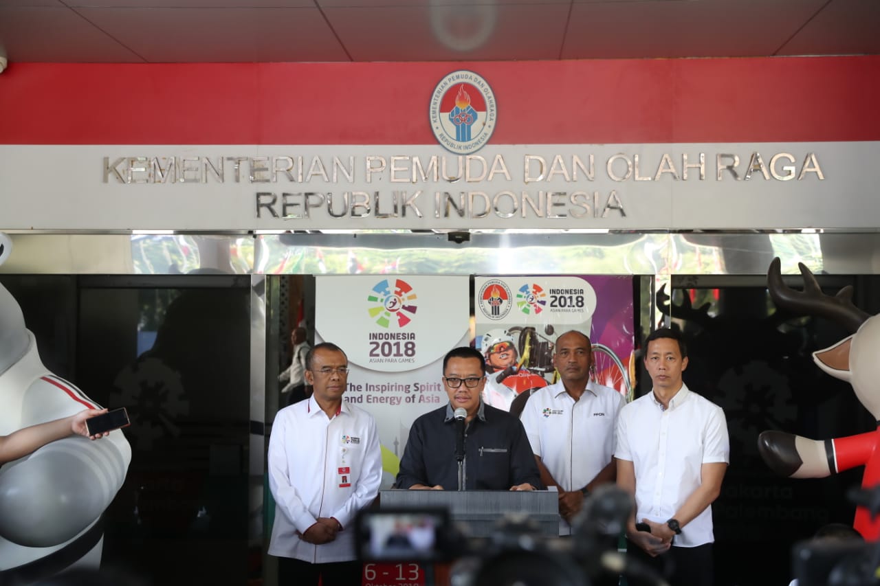 Menpora Imam Nahrawi menyampaikan keterangan pers di Kantor Kemenpora, Jakarta, Selasa (25/9) sore. (Foto: Humas Kemenpora)