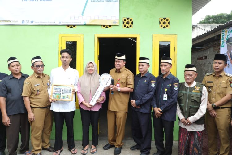 Setelah Memberikan santunan di Kantor Baznas, Bupati Tangerang beserta Ketua Baznas beserta jajaran meresmikan bedah rumah untuk keluarga kurang mampu di Kampung Cukanggalih, Desa Ciakar, Kecamatan Panongan. (RIK)