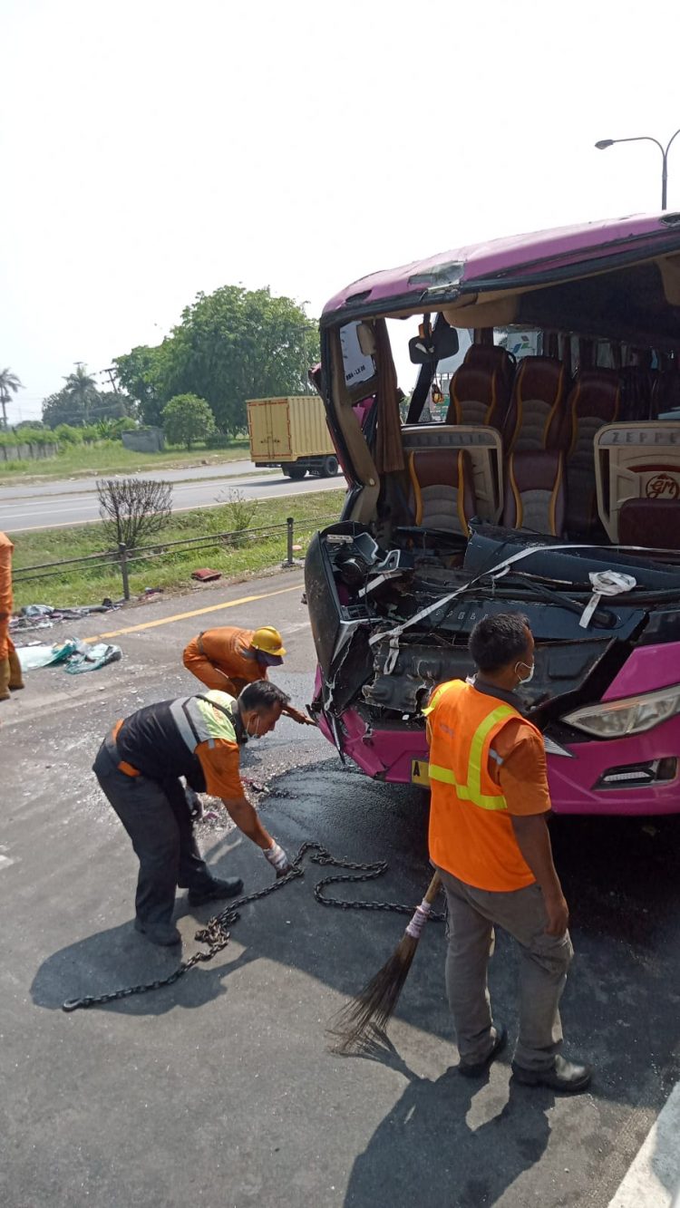 “Tabrakan beruntun tersebut melibatkan 4 bus pariwisata Komara, yaitu bus No.Pol A-7516-ZM, A-7516-ZA, A-7517-ZM, dan A-7537-ZA. Salah satu faktor awal yang menyebabkan kecelakaan adalah antar bus pariwisata tidak menjaga jarak ideal dalam berkendara kecepatan tinggi di jalan,” ucapnya Kabid Humas Polda Banten, AKBP Shinto Silitonga saat dikonfirmasi.