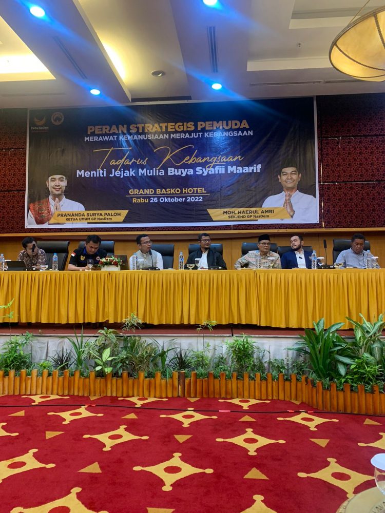 Garda Pemuda NasDem (GPND) kembali menghelat Tadarrus Kebangsaan dengan tema Meniti Jejak Mulia Buya Syafi’i Maarif di Sumatera Barat, Rabu (26/10/2022) sebagai bentuk penghormatan kepada tanah kelahiran Buya Syafi’i Maarif, yang sebelumnya acara serupa digelar GPND di Yogyakarta. Dalam acara ini GPND mengusulkan dan siap mengawal Buya Syafi’i Ma’arif menjadi Pahlawan Nasional.