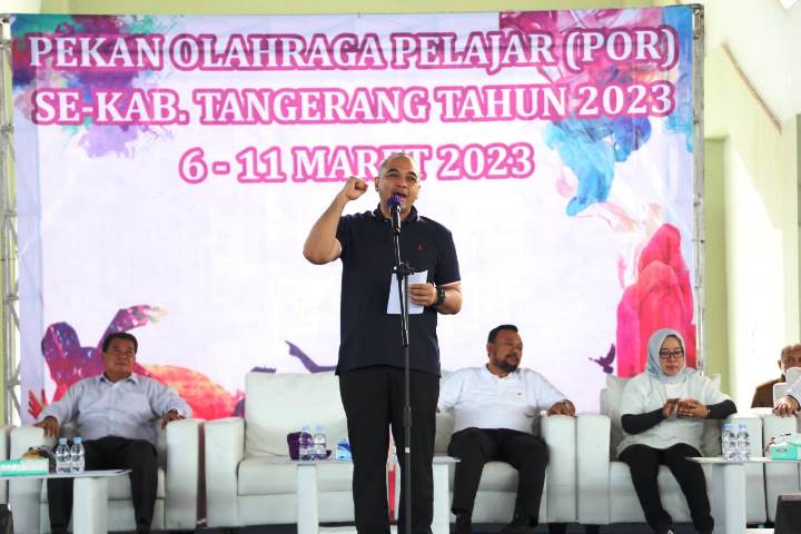 WARTA TANGERANG – Bupati Tangerang Ahmed Zaki Iskandar membuka Pekan Olahraga Pelajar Tingkat Kabupaten Tangerang tahun 2023,  yang digelar di Sport Center Indoor Kelapa Dua, Kabupaten Tangerang, pada Senin, (6/3/2023).