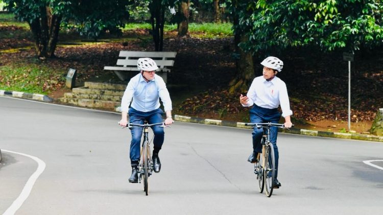 Ada yang menarik dalam rangkaian penyambutan resmi Perdana Menteri (PM) Australia Anthony Albanese, di Istana Kepresidenan Bogor, Jawa Barat, pada Senin, 6 Juni 2022. Usai melakukan kegiatan penanaman pohon, Presiden Joko Widodo mengajak PM Albanese untuk bersepeda pagi.
