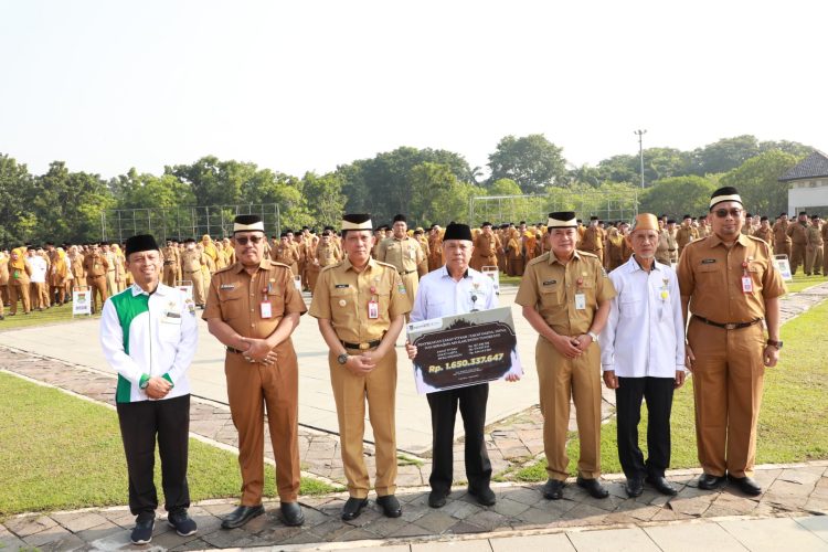 TANGERANG, WT – Zakat fitrah, zakat harta dan shodaqoh ASN dari pegawai di lingkungan Pemkab Tangerang sebesar Rp 1,6 miliar lebih dan diserahkan ke Baznas kabupaten setempat.