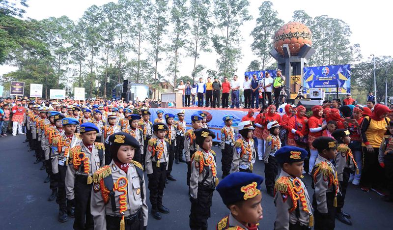 TANGERANG- Dinas Perhubungan Kota Tangerang menggelar peringatan Hari Perhubungan Nasional (HARHUBNAS) di area Car Free Day (CFD) Tugu Adipura, Minggu (16/9). Salah satu agenda dalam peringatan Hari Perhubungan Nasional tersebut pencanganan operasi Penegakan Ketertiban Lalu Lintas (Gaktiblantas) yang digelar selama September bekerjasama dengan TNI dan Polri untuk menekan permasalahan lalu lintas di kota Tangerang.