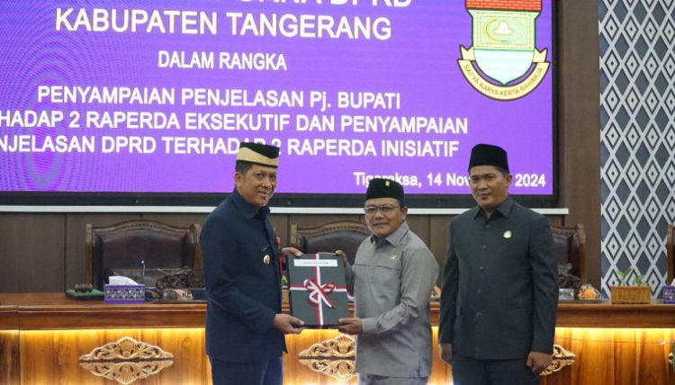 TANGERANG, WT – DPRD Kabupaten Tangerang menerima penjelasan Penjabat (Pj) Bupati terkait dua Rancangan Peraturan Daerah (Raperda) Eksekutif tentang pendirian Perseroda Lembaga Keuangan Mikro (LKM) Syariah Artha Kerta Raharja dan transformasi badan hukum Perseroda Bank Perekonomian Rakyat (BPR) Kerta Raharja Gemilang pada Kamis (14/11/2024).