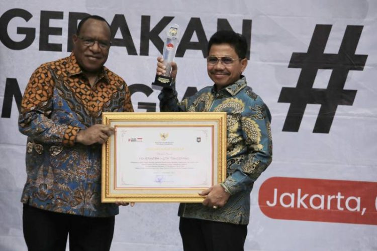 Penghargaan diserahkan langsung oleh Wakil Menteri Dalam Negeri (Wamendagri) John Wempi Wetipo, kepada Wakil Walikota Tangerang, Sachrudin yang berlangsung di Sasana Bhakti Praja Gedung C Kemendagri, Jakarta Pusat, Jumat (8/9/2023).