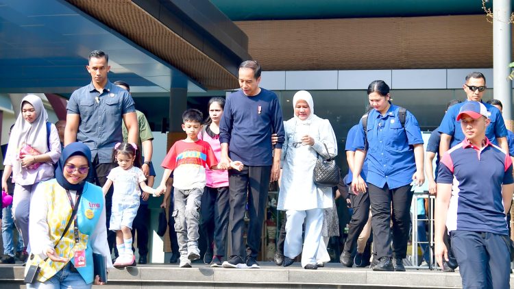 Presiden Joko Widodo dan Ibu Iriana Joko Widodo beserta kedua cucunya menghabiskan waktu bersama di Taman Mini Indonesia Indah (TMII), Jakarta, pada Sabtu, 8 Juni 2024.
