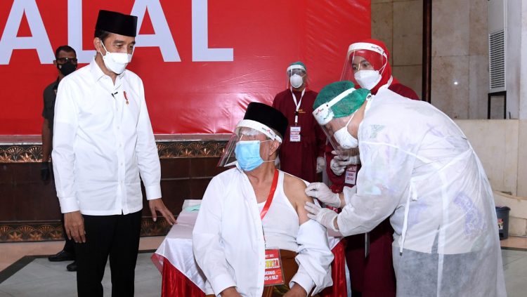 [FOTO] Presiden RI Tinjau Vaksinasi Massal Untuk Para Ulama, Tokoh Lintas Agama, dan Santri di Jawa Tengah