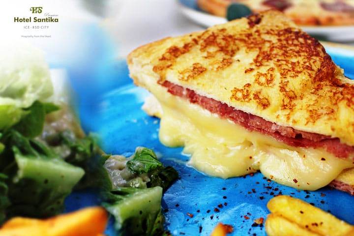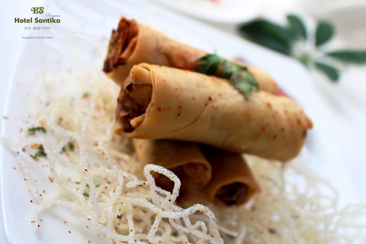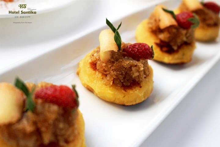 Makanan khas Perancis ini juga cocok dikonsumsi sebagai makanan ringan. Hotel Santika Premiere ICE-BSD City konsisten menggunakan bahan lokal yang diolah secara kreatif sehingga menghasilkan produk makanan yang bukan saja unik tapi juga enak.