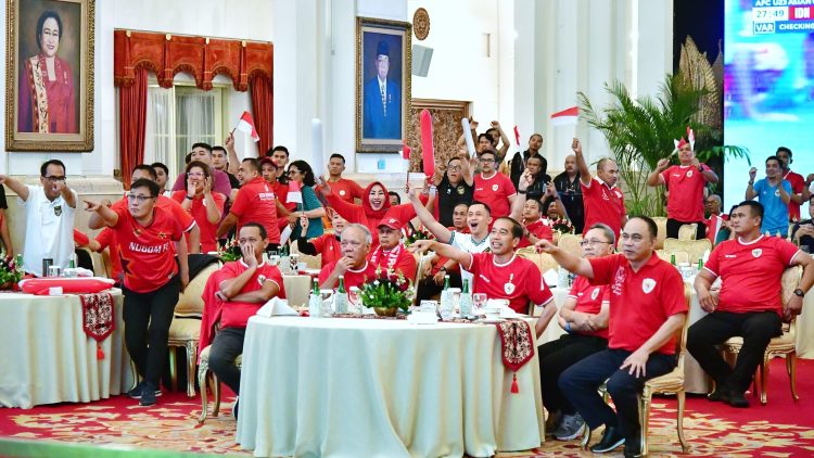 Presiden Joko Widodo, bersama dengan beberapa Menteri Kabinet Indonesia Maju dan undangan lainnya melaksanakan acara nonton bersama semi final piala AFC U-23 antara Indonesia melawan Uzbekistan di Istana Negara pada Senin, 29 April 2024.