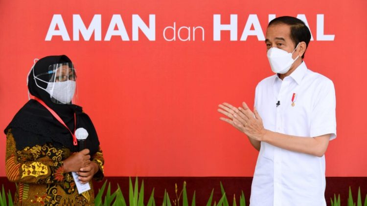 Seorang pedagang menyampaikan harapannya di hadapan Presiden Joko Widodo agar pandemi Covid-19 dapat segera berlalu.