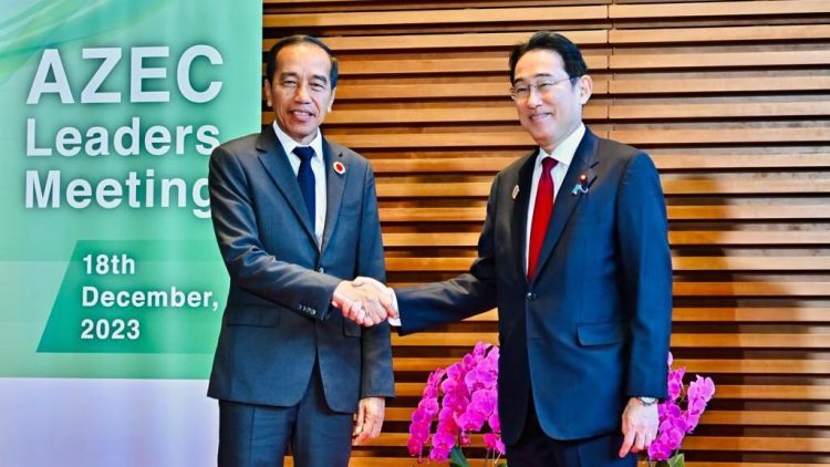 Presiden Joko Widodo melanjutkan kegiatan kunjungan hari ketiga di Tokyo, Jepang, dengan menghadiri Konferensi Tingkat Tinggi Asia Zero Emission Community (KTT AZEC) yang digelar di Kantor Perdana Menteri (PM) Jepang, pada Senin, 18 Desember 2023. Presiden Jokowi tiba di Kantor PM Jepang sekitar pukul 10.05 waktu setempat dan langsung disambut oleh PM Fumio Kishida.