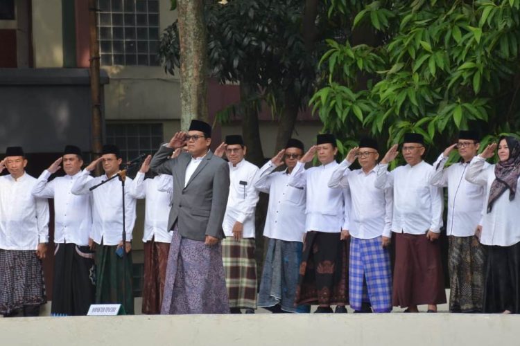 Mengenakan sarung, jas dan kopiah hitam, Prof Asep pun menyampaikan amanat dari Menteri Agama (Menag) Prof Nasaruddin Umar. Dalam amanatnya yang dibacakan Prof Asep, Menag menyampaikan belasungkawa terhadap insiden di Pondok Pesantren Al-Khoziny, Sidoarjo, Jawa Timur.