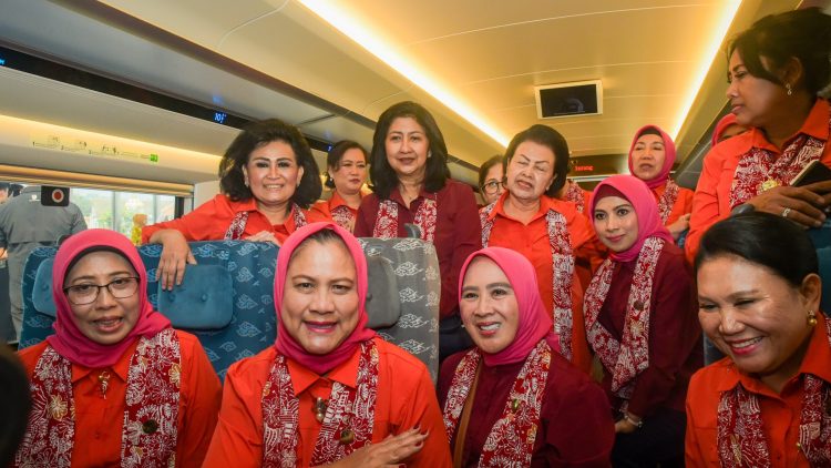Ibu Iriana dan para anggota OASE KIM duduk bersama di gerbong pertama kereta dengan nomor perjalanan G2001 tujuan Stasiun Halim hingga Stasiun Tegalluar.