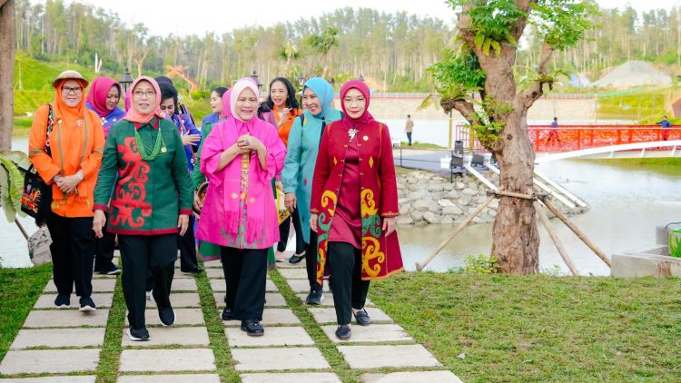 Ibu Iriana Joko Widodo dan Ibu Wury Ma’ruf Amin, beserta para anggota Organisasi Aksi Solidaritas Era Kabinet Indonesia Maju (OASE KIM) mengunjungi Embung MBH, Ibu Kota Nusantara (IKN), pada Jumat, 13 September 2024. Saat memandu peninjauan, Menteri Pekerjaan Umum dan Perumahan Rakyat (PUPR) Basuki Hadimuljono menyampaikan bahwa embung tersebut bermanfaat untuk konservasi air di kawasan IKN.