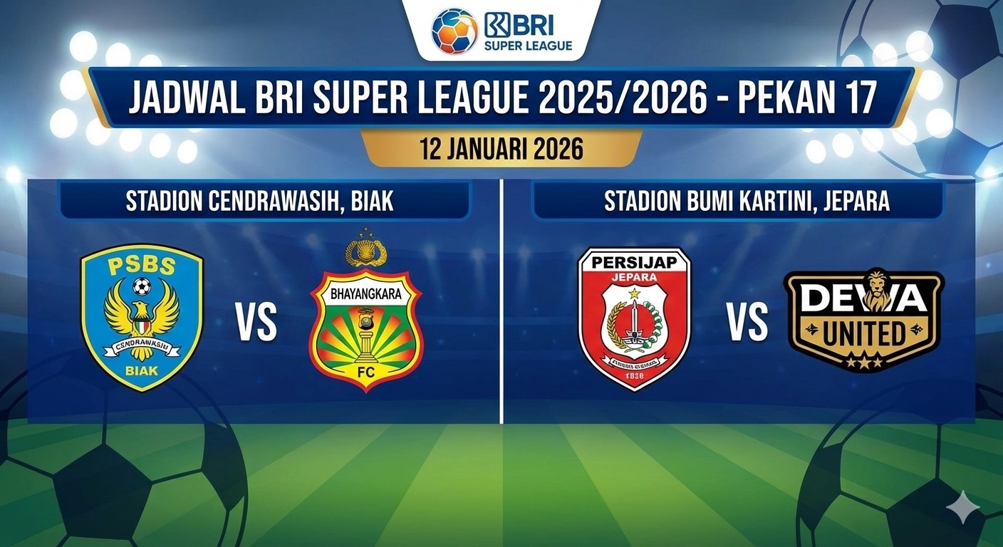 TANGERANG, WT – Pada Senin, (12/1/2026) jadwal pertandingan di kompetisi BRI Super League 2025/2026 pekan ke-17 menyisakan duel-duel yang patut dinantikan. Setelah rangkaian hasil dramatis di akhir pekan lalu, hari ini giliran empat tim lainnya yang akan bertarung memperebutkan poin penuh demi menutup putaran pertama dengan hasil manis. Fokus utama pecinta sepak bola tanah air tertuju pada laga di ujung timur Indonesia dan wilayah Jawa Tengah yang diprediksi akan berjalan sengit.