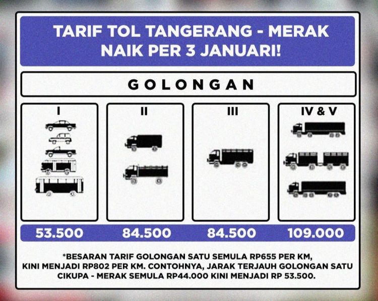 “Perhari ini tadi sudah kita browsing Keputusan Menteri yang dimaksud, namun keteranganya Tidak Ditemukan, Sekalipun benar telah terbit Keputusan Menteri yang dikeluarkan pada 12 Desember 2022 lalu. Mestinya, pengelola Jalan Tol Tangerang-Merak menyosialisasikan kenaikan tarif tersebut setelah keluarnya penetapan kenaikan tarif tol tersebut. Bukan justru baru disampaikan melalui @astratoltamer Pada 26 Desember dan 02 Januari 2023 atau satu hari sebelum penyesuaian Tarif tersebut diberlakukan,” terangnya.