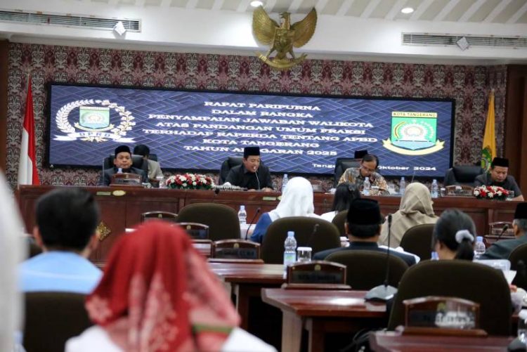 TANGERANG, WT – Penjabat (Pj) Wali Kota Tangerang, Nurdin, menghadiri Rapat Paripurna DPRD Kota Tangerang untuk menyampaikan tanggapan atas pandangan umum fraksi-fraksi terkait Rancangan Peraturan Daerah (Raperda) tentang Anggaran Pendapatan dan Belanja Daerah (APBD) Kota Tangerang Tahun Anggaran 2025 pada Jumat, (11/10/2024).
