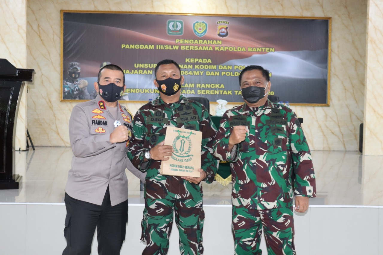 “Agar seluruh satuan dan prajurit jajaran korem 064/MY dan Polda Banten tidak memberikan fasilitas baik berupa tempat maupun sarana yang dimiliki oleh TNI dan Polri kepada pasangan calon Pilkada manapun untuk digunakan sebagai sarana kampanye, tidak mendukung salah satu pasangan calon dan tetap bersikap Netral pada Pilkada serentak 2020,” ucap Pangdam.