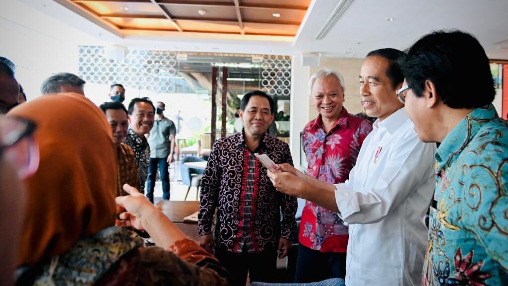 Presiden Joko Widodo bertemu dengan teman-temannya semasa mengenyam pendidikan di Fakultas Kehutanan, Universitas Gadjah Mada (UGM). Tiba sekitar pukul 09.00 WIB di Kawasan Ambarukmo, Kabupaten Sleman, pada Minggu, 16 Oktober 2022, Presiden Jokowi tampak berbincang santai dengan teman-teman beliau semasa kuliah.