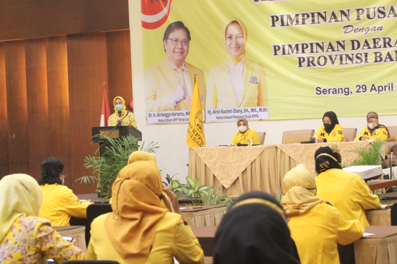SERANG – Dewan Pimpinan Pusat (DPP) Kesatuan Perempuan Partai Golkar (KPPG) meminta seluruh kader perempuan baik di tingkat provinsi maupun tingkat kabupaten/kota agar merapatkan barisan dan memperbaiki struktural. Hal tersebut guna merealisasikan target-target politik pada Pemilihan Umum (Pemilu) serentak tahun 2024.
