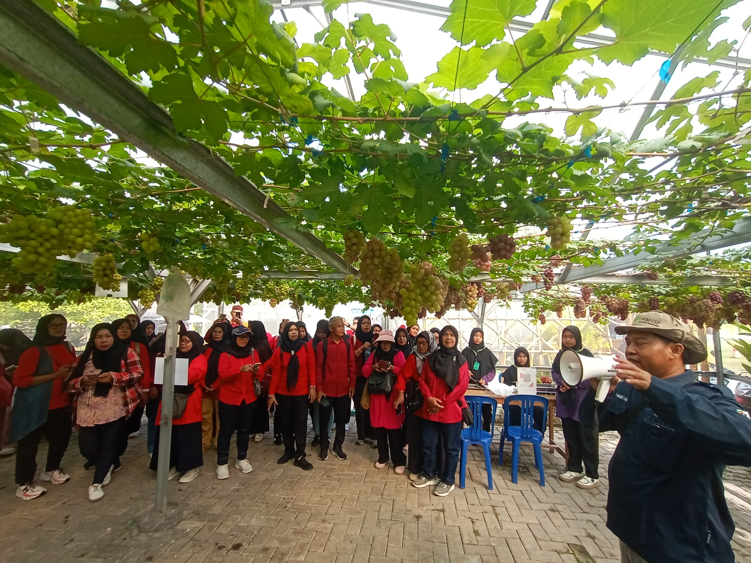 Sebelum mendapatkan materi, peserta KWT diajak berkeliling untuk melihat budidaya anggur, melon dan semangka di green house di lokasi tersebut.