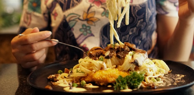 Pasta yang dipilih adalah jenis pasta Fettucini dimasak hingga Al-Dente, dipadukan dengan Creamy Sauce, dan juga dilengkapi dengan Chicken Katsu yang memiliki tekstur garing diluar dan daging yang juicy dibagian dalamnya. Menu ini menjadi sangat favorit dikalangan anak-anak hingga dewasa,
