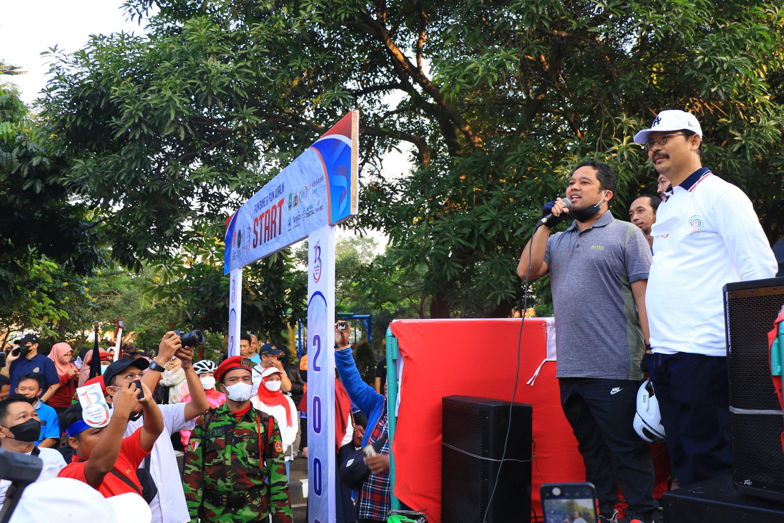 Walikota Tangerang Arief R. Wismansyah bersama Istri, Aini Wismansyah didampingi Kepala Dinas Pemuda dan Olahraga (DISPORA) Kota Tangerang, Kaonang, berkesempatan melepas langsung ribuan goweser dan rombongan jalan sehat yang terdiri dari seluruh civitas akademika UMT serta masyarakat umum pada Minggu pagi (14/8/2022).