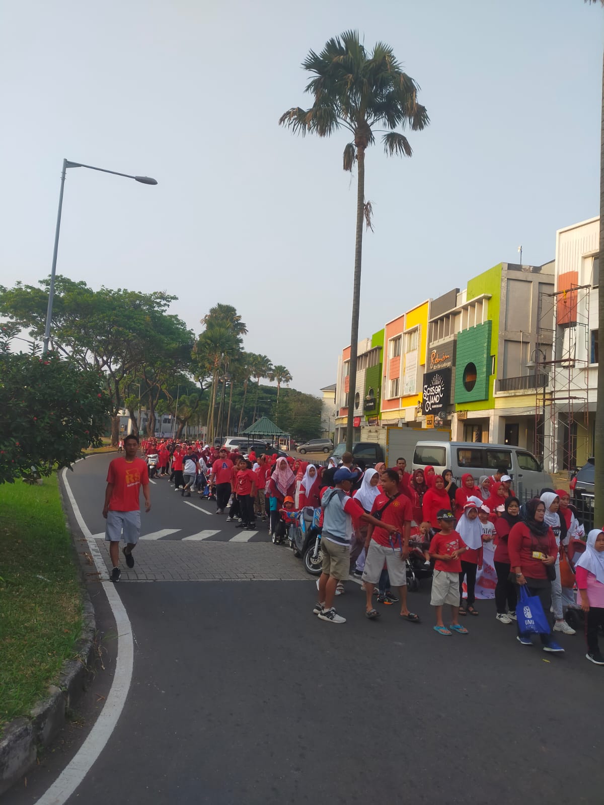 Sejak pukul 06.00 WIB, warga yang didominasi mengenakan pakaian warna merah berkeliling Gading Serpong.
