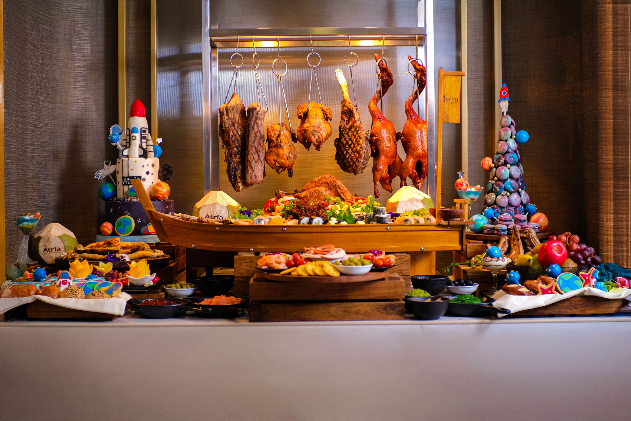 Executive Chef Atria Hotel & Residences Gading Serpong, Chef Hidayat, turut memaparkan konsep buffet bertema “Diversity of Taste in The Universe” yang akan menjadi sajian utama pada gala dinner. Para tamu dapat menikmati 17 stall hidangan internasional, menghadirkan variasi menu dari berbagai negara. Beberapa hidangan unggulan yang akan disajikan antara lain Roasted Turkey, Beef Tomahawk, live cooking pasta dengan wheel cheese, sushi bar, hingga dessert bertema galaxy. Chef Hidayat menambahkan, akan ada cooking class menghias muffin dengan tema galaksi yang bisa diikuti oleh tamu dewasa maupun anak-anak.