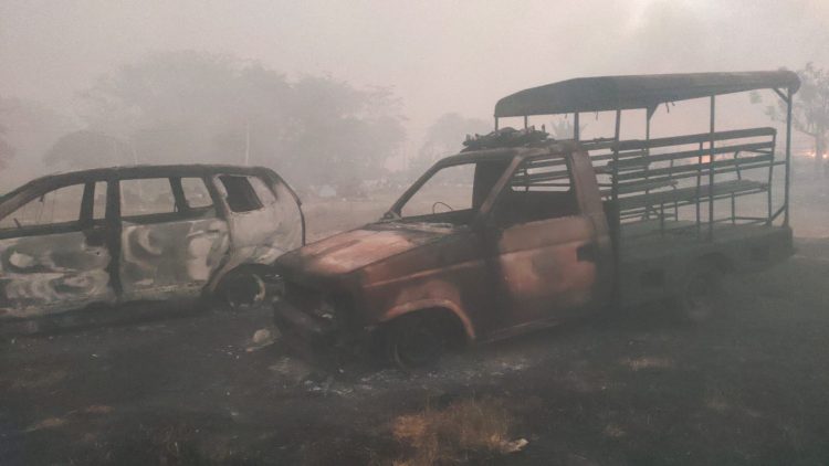 TANGERANG, WT – Api dari kebakaran dahsyat di TPA Rawa Kucing, Kota Tangerang menyambar dan menghanguskan tiga kendaraan operasional dinas Satpol PP dan alat berat mini.