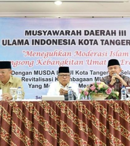PONDOK CABE (Kabartangsel.com) – Majelis Ulama Indonesia (MUI) kota Tangsel, pada Selasa (25/06/2019) menggelar Musyawarah Daerah (Musda) III Tahun 2019 bertempat di Wisma I Universitas Terbuka, Pondok Cabe, Tangsel. Raker dibuka oleh Walikota Tangsel, Airin Rachmi Diany, dan dihadiri oleh Wakil Walikota Tangel, Benyamin Davnie, Ketua Umum MUI Banten, AM. Romli, Kepala Kantor Kemenag Tangsel, […]