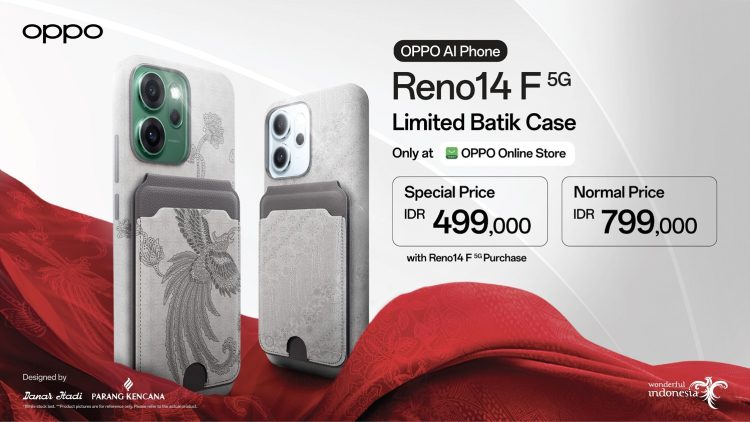 TANGERANG, WT – Dalam rangka memperingati HUT ke-80 Republik Indonesia, OPPO Indonesia menghadirkan aksesori spesial berupa case eksklusif edisi kemerdekaan bertema batik untuk OPPO Reno14 F Series. Produk edisi terbatas ini mulai tersedia pada 17 Agustus 2025 dengan harga Rp799.000. Konsumen yang membeli bundling dengan Reno14 F Series akan mendapatkan cashback Rp300.000, sehingga harga menjadi Rp499.000.