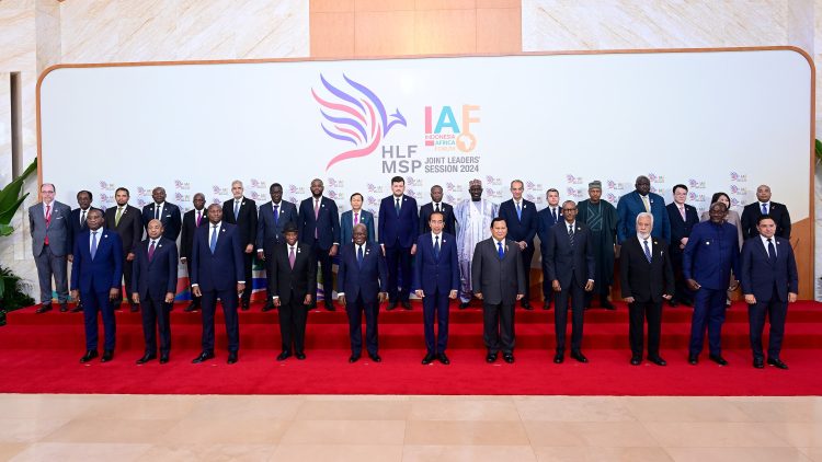 Selanjutnya, Presiden Jokowi bersama para pemimpin delegasi melakukan sesi foto bersama. Tampak Presiden Jokowi berdiri diantara Presiden RI terpilih 2024-2029 Prabowo Subianto dan Presiden Ghana Nana Akufo-Addo.