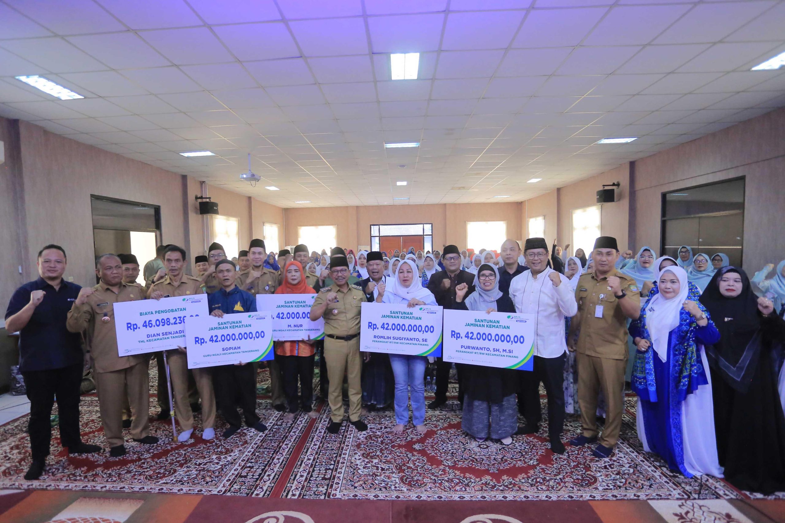 TANGERANG, WT – Sebagai wujud komitmen dalam memberikan jaminan perlindungan sosial, Pemkot Tangerang bekerja sama dengan BPJS Ketenagakerjaan (BPJSTK) Cikokol menyerahkan santunan Jaminan Kematian (JKM) kepada lima penerima manfaat. Bantuan ini diberikan kepada ahli waris guru ngaji dan perangkat RT/RW yang terdaftar dalam program jaminan sosial.