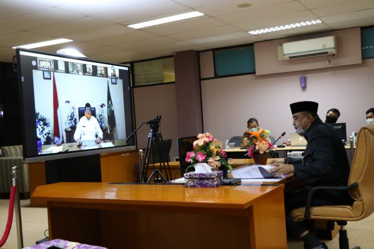 Caption: Bupati Tangerang Zaki Iskandar saat rapat melalui video conference. (Ist)