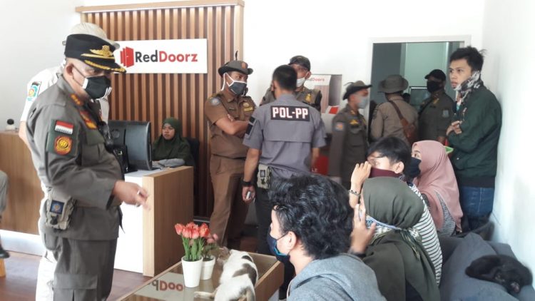 TANGSEL– Sebanyak 11 pasangan muda mudi yang sedang ngamar di salah satu Hostel RedDoorz kawasan Cimanggis, Ciputat, Tangsel digerebek oleh tim Satuan Polisi Pamong Praja (Satpol PP), Sabtu (30/5/2020).